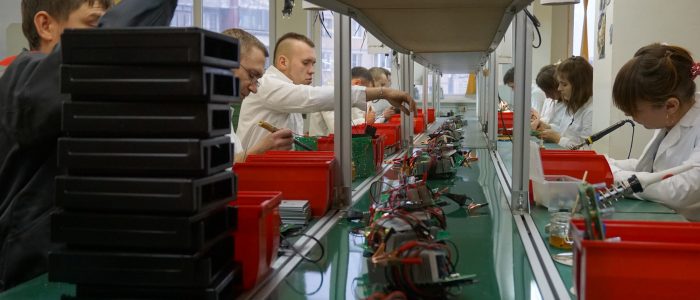 На базе предприятия обеспечивается полный цикл производства: от идеи, разработки устройства, до создания печатной платы и сборки готового изделия. Серийное, конвейерное производство позволяет контролировать качество и повышать его уровень. |